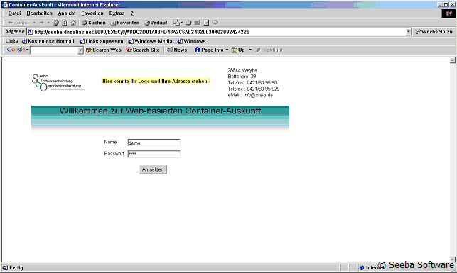 Diese Informationen werden zeitaktuell aus der Datenbank herangezogen und dem Kunden über einen Internet-Browser nach Eingabe von Namen und Passwort angezeigt.